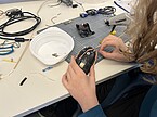 „Nutcrackers from Outer Space“ – Die 7a gestaltet Kunst aus Müll Im Rahmen der diesjährigen ökologischen Vorhabenwoche hat die Klasse 7a ein etwas anderes Kunstprojekt umgesetzt: Unter dem Titel „Nutcrackers from Outer Space“ verwandelten die Schüler*innen leere Pringlesdosen in fantasievolle Nussknacker und formten aus Elektroschrott beeindruckende Raumschiffe. Die gemäß des Upcycling-Prinzips gestalteten Werke konnten sich wirklich sehen lassen. Zu Beginn der Woche beschäftigte sich die Klasse mit dem eigenen ökologischen Fußabdruck und der Frage, wie man Ressourcen schonen kann. Schnell wurde klar, dass Recycling nicht nur sinnvoll, sondern auch richtig spannend sein kann. Oder, wie ein Schüler es ausdrückte: „Die ökologische Vorhabenwoche zeigt uns auch, dass wir aus Müllresten super coole Dinge basteln können.“ Mit Hilfe von Heißkleber wurden alte Radios, Computermäuse, Drähte und Dosen zu neuen Kunstwerken zusammengesetzt. Anschließend grundierten und bemalten die Schüler*innen ihre Plastiken mit Sprühfarbe, sodass aus den einzelnen Teilen ein stimmiges Gesamtbild entstand. Eine Schülerin berichtete stolz: „Ich habe mit Leonie aus einem alten Radio einen Satelliten gemacht.“ Andere arbeiteten an tierischen Science-Fiction-Figuren: „Wir haben aus einer Computermaus eine Supermaus gebaut!“ Doch auch Pausen gehörten dazu. Zwischendurch brauchte die Gruppe eine kleine Auszeit – und nutzte sie für die Vorweihnachtszeit: „Als wir keine Lust mehr hatten, haben wir den Weihnachtsbaum geschmückt.“ Nicht jede Idee stand sofort fest. Manche brauchten einen Moment Inspiration, bis der Funke zündete. Ein Schüler erzählte: „Ich wusste am Anfang gar nicht, was man bauen könnte. Dann sah ich ein cooles Bild, das mich überraschte. Unser Raumschiff bauten wir am Ende aus einer Spriteflasche, Pringlesdose und einem kleinen Motor.“ Das Projekt „Nutcrackers from Outer Space“ zeigte anschaulich, wie Kunst, Nachhaltigkeit und Teamarbeit zusammenfinden können. Die 7a zeigte, dass Müll nicht das Ende eines Gegenstandes bedeuten muss – sondern manchmal auch der Anfang einer richtig guten Idee.